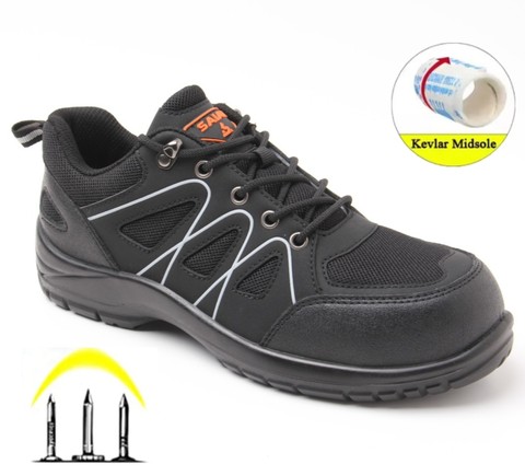 SAIAN Anti-Smash Protector PU Suela de goma Zapatos de trabajo de seguridad Microfibra Oxford Punta de acero superior Transpirable Plantilla de TPU Uso de fábrica